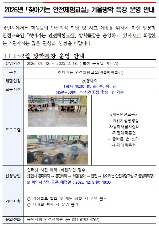 2026 찾아가는 안전체험교실 겨울방학 특강
