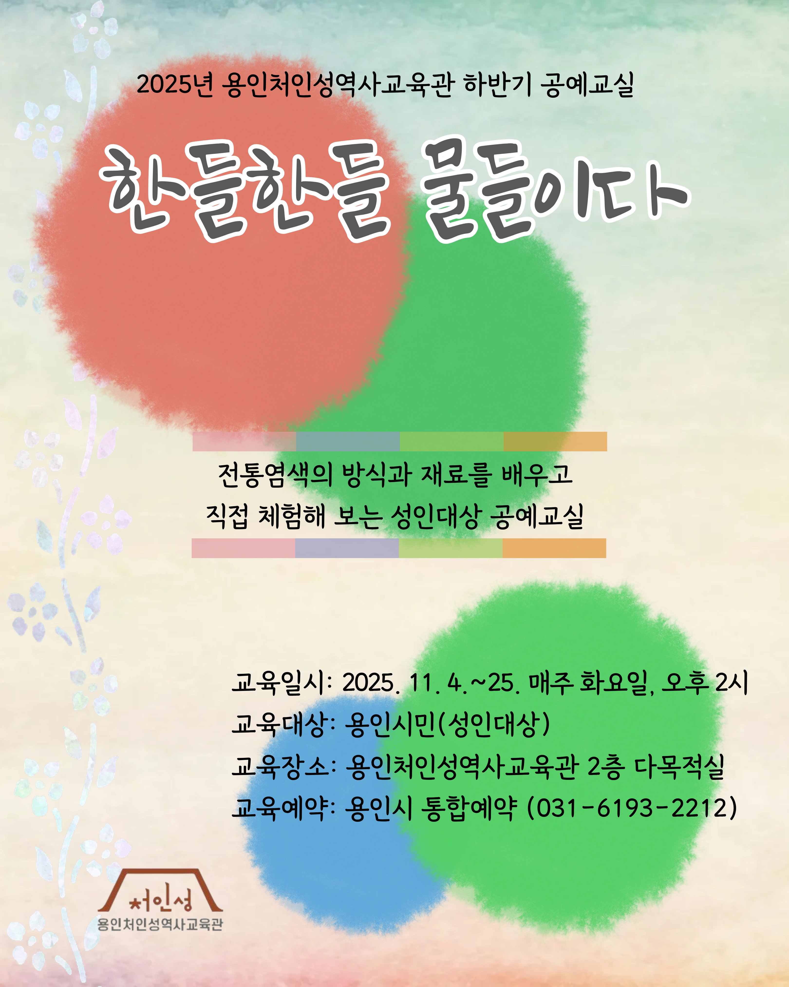 | 프로그램 안내문구 | 성인대상교육입니다. 11월 4일-11월 25일 화요일 오후 2시 | ||